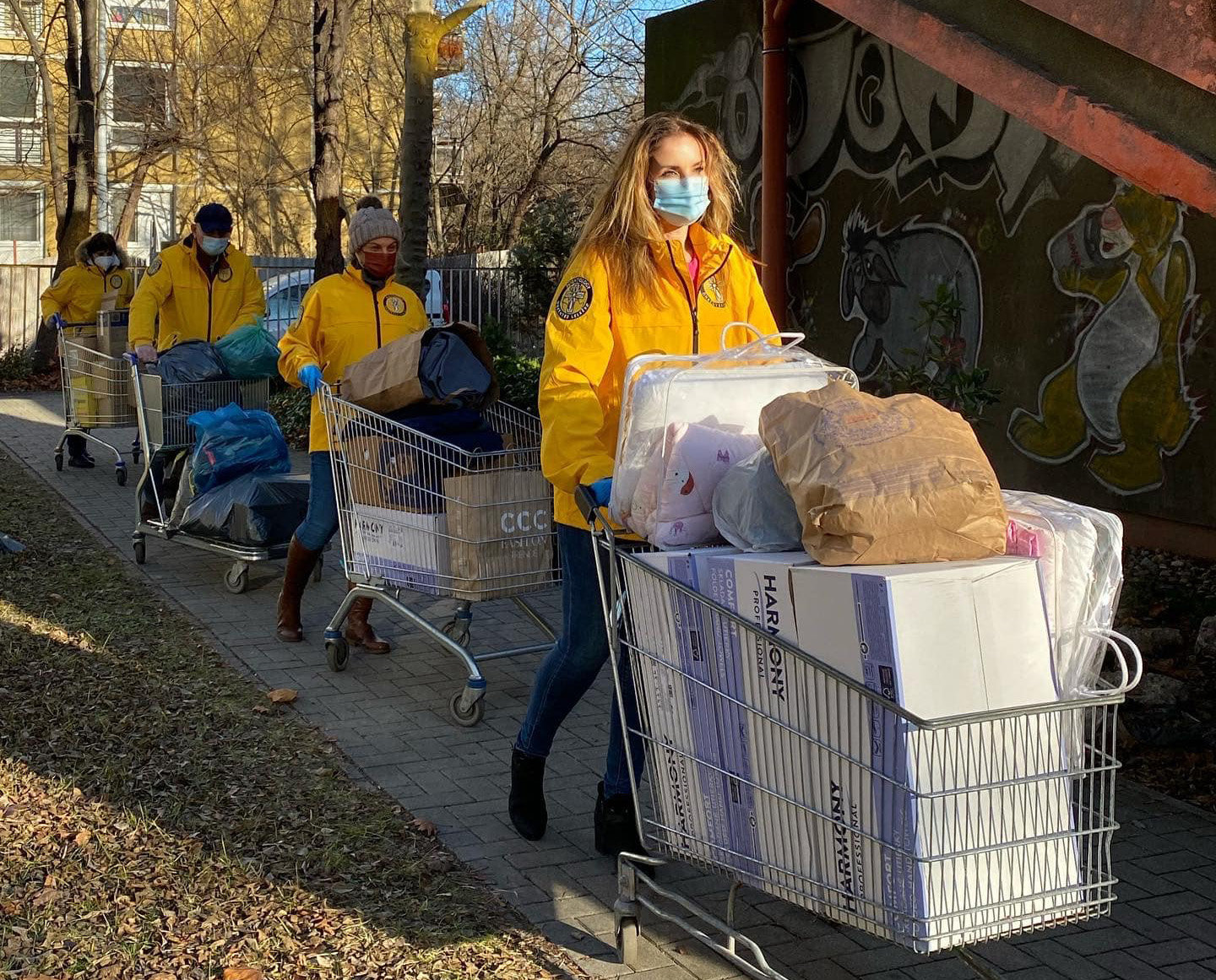 彼らはデブレチェンの街を訪れて、彼らのホリデー活動を始めました。そこは、チルドレンズ・ホープ財団が障害や慢性疾患を抱えた人々を世話しています。 彼らは子供のためのクリスマス・プレゼントと、家族のための保存食を持って来ました。 これには缶詰、牛乳、調理油、卵、ジャガイモ、玉ねぎ、そして2パレット分のクリーニング用品と衛生用品が含まれていました。 チルドレンズ・ホープ財団は、これらの困難な時を乗り越えるのを助けるために、家族に供給品を提供しました。