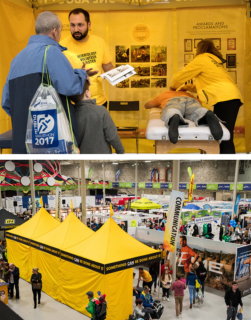 アイルランドでのダブリン・マラソン・エキスポの一環として、ロイヤル・ダブリン・ソサエティー・ホールにボランティア・ミニスターのテントが設置されました。そこでは地域社会の人々に、サイエントロジーの技術とノウハウを紹介し、実際にアシストを与え、サイエントロジーに対する多くの質問に答えました。