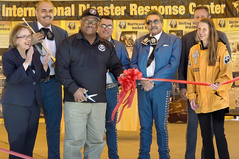 エル・マリアッチ・ヌエボ・メキシコ・バンドの活気溢れる曲とフラメンコ・ダンスが、ニューメキシコ大学でボランティア・ミニスター大行進のオープニングの合図を送りました。 アルバカーキ災害対策局の災害計画担当者のフレッド・ホーガン氏が展示会のリボンをカットし、災害の際に自分たちの命を守る基本技能を学ぶよう学生たちをその中に招きました。