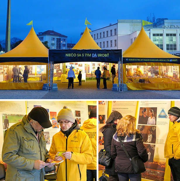 ニトラ市長の祝福を受け、ツアーは、黄色いテントをスバトプルコボ広場に設置。 そのボランティア・ミニスターのテントでは、VM:人生に役立つ技術コースで網羅されている、人生の19の領域に関する情報パネルを特集しました。 これらにはコミュニケーション、ストレス、対立の解決策、結婚、子供、仕事、組織化、エシックスのコース、さらに薬物に対する解決策が含まれています。 パネルを見学した後、人生における関心事に取り組むどの主題であろうと、テントのその場で無料コースを始めることができます。 彼らが家に帰ってからも自分や他の人にそれらを適用し続けることができるように教材も入手可能です。