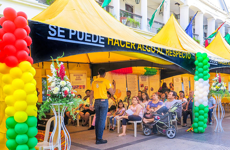 彼らの到着がアナウンスされ、全員がテントに招待されました。そしてボランティア・ミニスターはボリビアのテレビ、ビバ・ラ・マナーナ(朝の長い人生)プログラムのインタビューを受けました。 これに続いて、パセニシマTVがボランティアにインタビューし、「人生に役立つ技術」の19のコースの情報を含むテントのパネルを紹介しました。