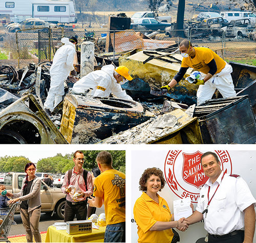 合計すると、 VMは16,500人以上の人々を助け、避難者に85万以上の品々を提供し、10,500以上の埃用マスクを地元の人々に配給し、3,000時間以上のボランティア作業を行いました。 救世軍関係者はこう述べました。「この災害全体を通じての彼らの助けに、私たちはとても感謝しています。 彼らの活動の核心が、直接被害を受けた人々への、そして援助を必要としていた職員に対する、彼らの思いやりに示されていました。
